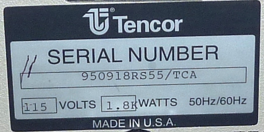 - Serial Number: 9211RS55/TC-92 -- Sticker